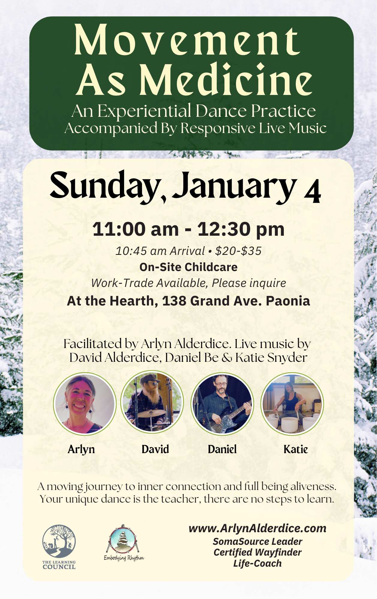 Let’s inhabit our bodies fully and open to the richness of being alive. Through dance, we listen to the language of sensation, emotion, and energy moving through us. Every gesture, every breath, becomes an invitation to come closer to ourselves.